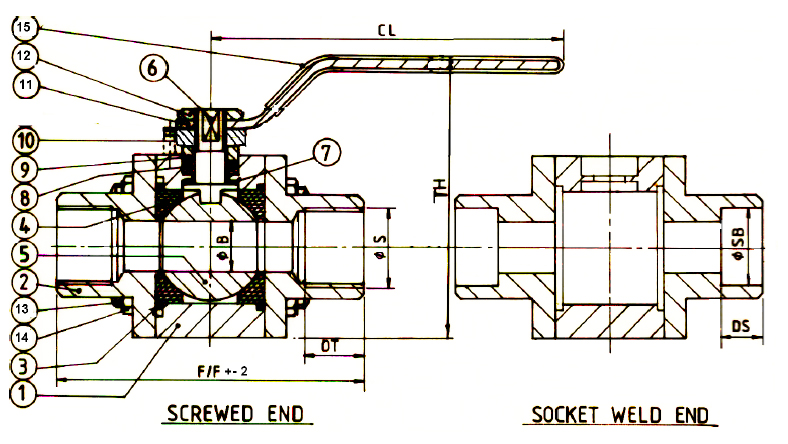 1, 2 ,3 Pc Design Screwed SW Ball Valve